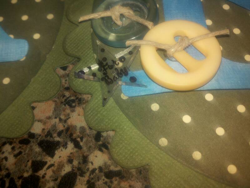 Good Morning.... Last night I wormed on baby Zimmermans gift. I got the idea from a website. I used the Sizzix scallop circle, clear circle, and star punch. The paper is from this catalogs Christmas scrapbook pack. The star buttons are always fun to make. A little shrinky dink paper, wild about you stamp set, for baby stamp set, and some Stazs on voila you have a cute banner. Let me know what you think.